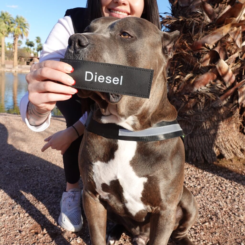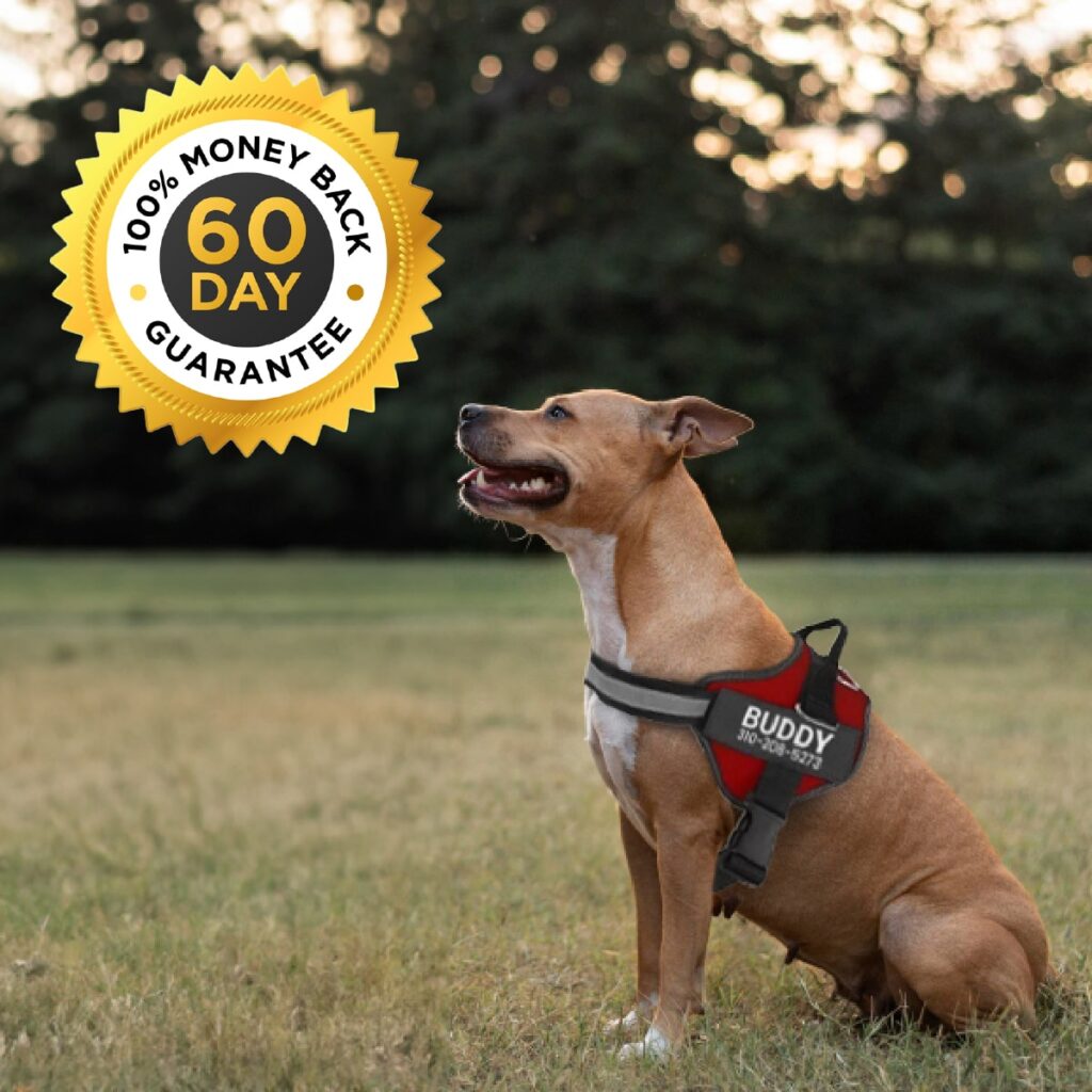 Now you can take an adventure with more confidence! Your dog will attract attention (+ lots of compliments) with the stylish GripHarness™ with personalized text and your phone number.